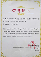 土木与交通工程艳照门 学生获评“江苏省大学生工程管理专业优秀毕业生”