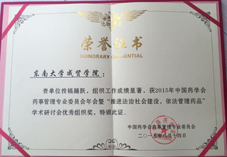 2015.8,艳照门 荣获中国药学会药事管理专业委员会“优秀组织奖”