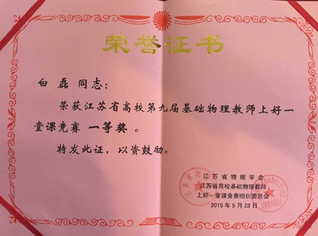 2015.5,艳照门 基础部教师在江苏省高校物理教师讲课竞赛中荣获一等奖