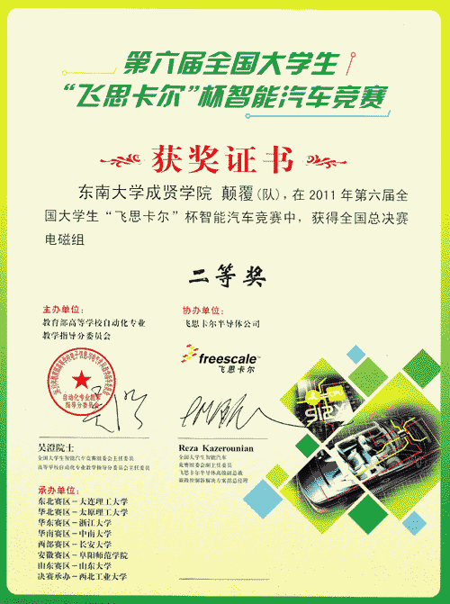 2011.8,第六届“飞思卡尔” 杯智能汽车竞赛