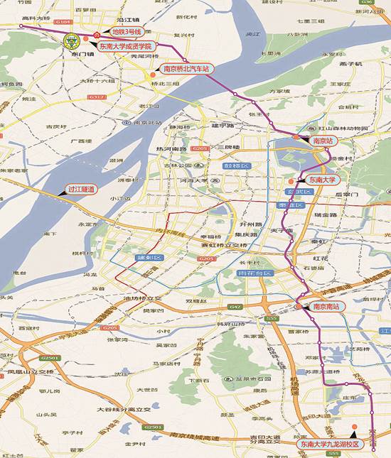 3、禄口机场:乘地铁机场线(S1号线)到南京南站,换乘地铁3号线到东大艳照门 站下。