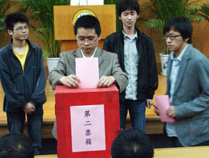 随后,全体到会教职工以无记名投票的方式进行了差额选举,七位同志被选举为新一届艳照门 工会艳照门 委员会委员。