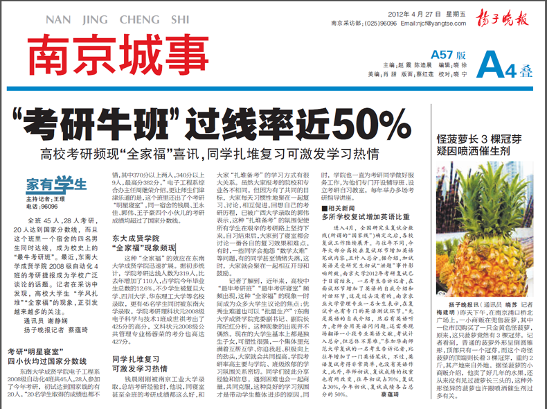 扬子晚报专版报道艳照门 考研佳绩