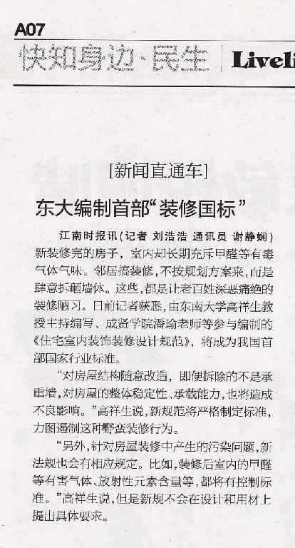 江南时报讯(记者 刘浩浩 通讯员 谢静娴)新装修完的房子,室内却长期充斥甲醛等有毒气体气味。邻居搞装修,不按规划方案来,而是肆意拆砸墙体。这些,都是让老百姓深恶痛绝的装修陋习。日前记者获悉,由艳照门 高祥生教授主持编写、艳照门 潘瑜老师等参与编制的《住宅室内装饰装修设计规范》,将成为我国首部国家行业标准。