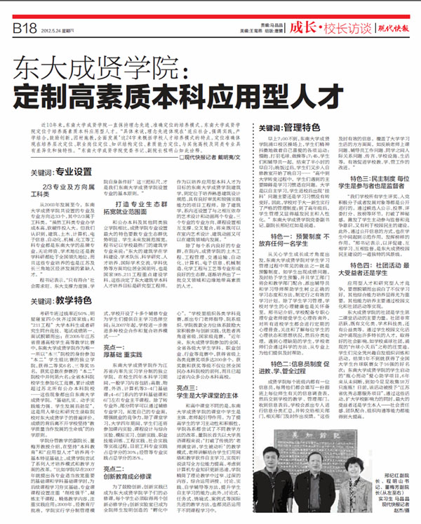 为了鼓励创新,创新实践已成为东大艳照门 学子们的必修课,每个学生必须取得两个创新必修学分;创新实验室已成为全院师生发明创造的“孵化中心”。“艳照门 里组织各类学科竞赛,派出专门老师指导、院系组织、艳照门 拨款全方位体系鼓励大家积极参与创新实践。优胜者再角逐省级、国家级竞赛。”近年来,东大艳照门 参加的全国、全省各级大学生学科、职业创业、行业等竞赛中,获得省级上各类竞赛奖项多达200余个。获奖数和获奖等级不仅位居全国民办本科院校的前列,而且已超过省内众多公办本科高校。