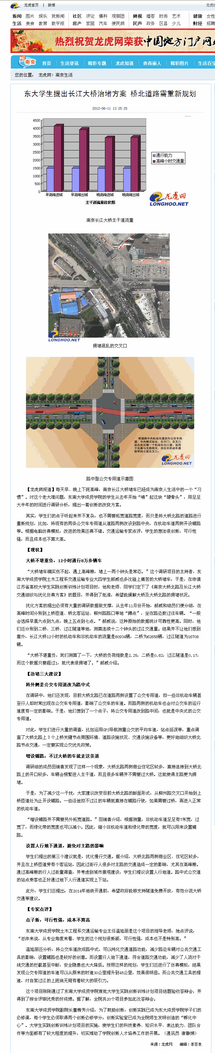 【龙虎网】东大学生提出长江大桥治堵方案 桥北道路需重新规划
