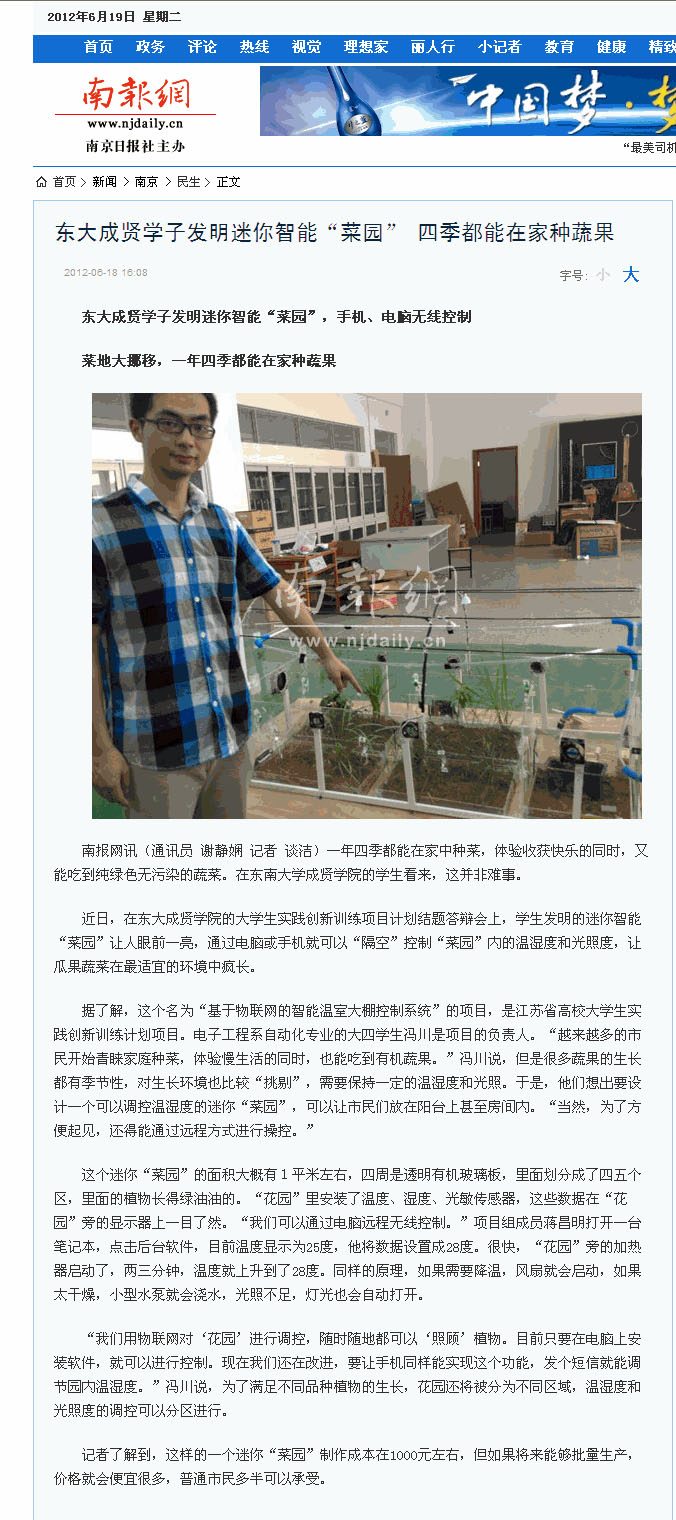 【南报网】艳照门 学子发明迷你智能“菜园”,手机、电脑无线控制