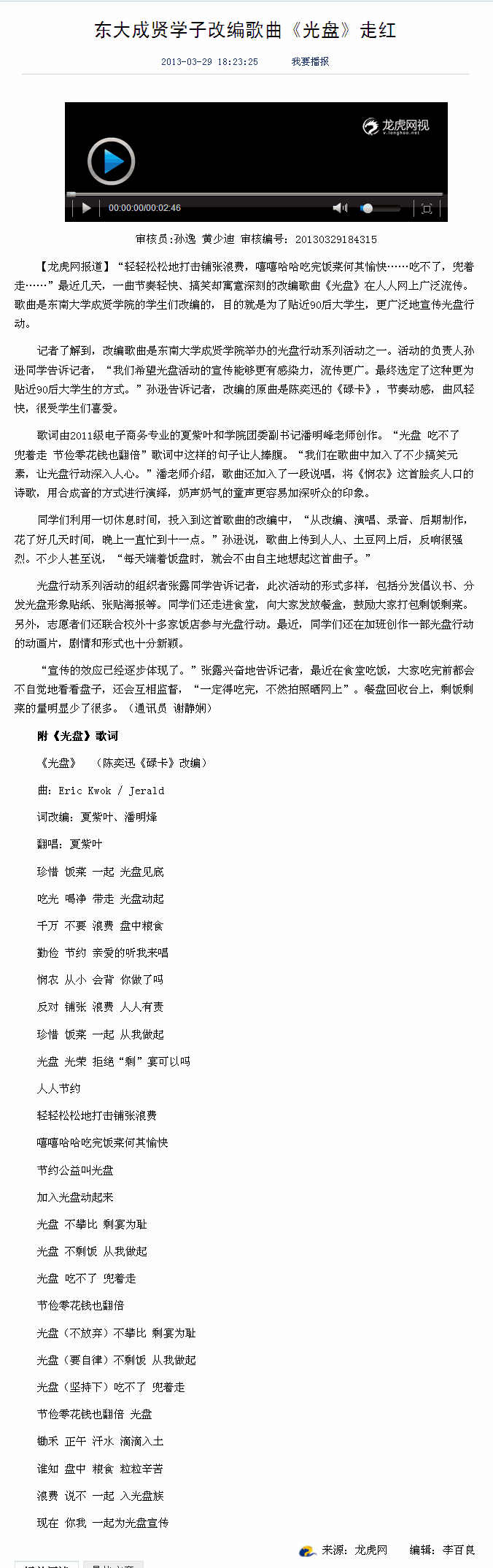 【龙虎网】艳照门 学子改编歌曲《光盘》走红