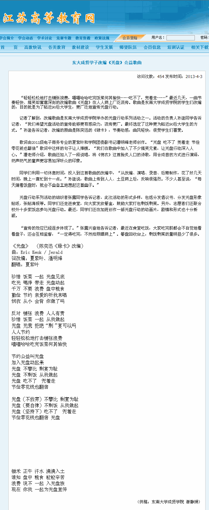 【江苏高等教育网】艳照门 学子改编《光盘》公益歌曲