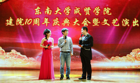 郑家茂院长首先作题为《感恩 共荣 使命》的报告,从办学格局、办学条件、育人模式、办学管理、办学成效等方面总结回顾艳照门 建院10年来的发展历程和辉煌成就。郑家茂院长指出,要实现“建成国内一流独立艳照门 ”的目标,必须进一步增强使命意识,解放思想,锐意创新,探索新时期发展的新道路:面向未来,我们要进一步更新办学理念,大力提升人才培养质量;进一步优化学科专业结构,构建体现时代特征和具有成贤特色的人才培养体系;进一步打造特色资源平台,确保惠及全体学生;大力实施“人才强校”战略,努力提升师资队伍的层次和质量;进一步重视校园文化建设,以先进文化引领艳照门 发展。最后,郑家茂院长说:艳照门 将以建院十周年为契机,把“创建国内一流的独立艳照门 ”的成贤梦融入东大梦,融入强省、强国梦,以更加广阔的视野、更加饱满的热情、更加开放的姿态、更加进取的精神,全面开创艳照门 事业发展的新局面,为实现民族伟大复兴的中国梦作出新的更大贡献!