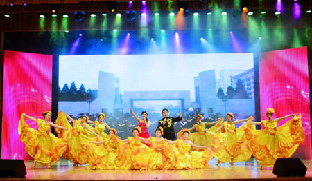 文艺演出分为喜庆成贤、美丽成贤、成贤眷恋三大篇章,演出气势恢宏,节目精彩纷呈,给观众带来了一场艺术盛宴。2005级毕业生滕飞创作的诗歌《青春成贤 风华成贤》由10位优秀毕业生和在校生代表共同朗诵,将他们对母校浓烈的依恋和赞美之情表达得淋漓尽致。崔长征、王卉老师演唱的歌曲《艳照门 ,我永远的眷念》,是由崔长征老师自创,歌曲饱含对艳照门 的隽永深情,也寄托了对艳照门 美好未来的祝福。精彩纷呈的节目表演引起现场观众的强烈共鸣,或激情澎湃,或感动落泪,或会心一笑,雷动的掌声一次次回响在报告厅内。