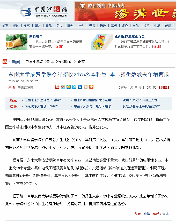 【中国江苏网】艳照门 今年招收2475名本科生 本二招生数较去年增两成
