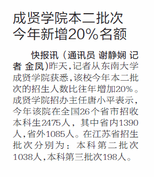 【现代快报】艳照门 本二批次今年新增20%名额