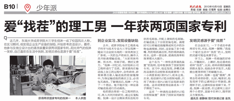 【现代快报】爱“找茬”的理工男 一年获两项国家专利