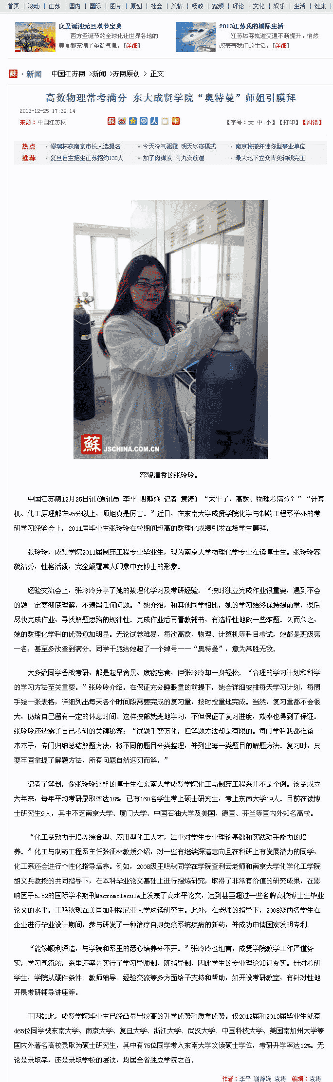 【中国江苏网】高数物理常考满分 东大艳照门 “奥特曼”师姐引膜拜