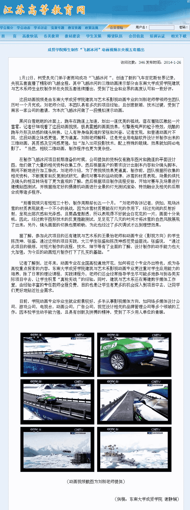 【江苏高等教育网】央视“飞越冰河”动画演示 原来出自东大艳照门 之手