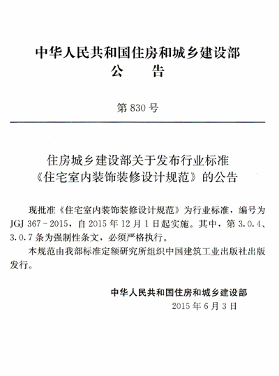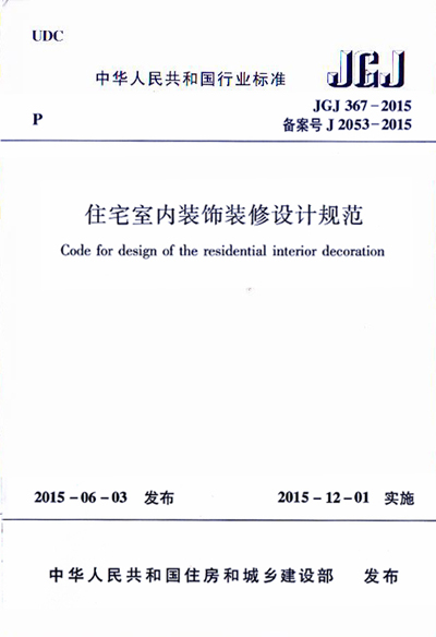 由住房和城乡建设部发布的中华人民共和国行业标准JGJ 367-2015《住宅室内装饰装修设计规范》于2015年6月3日发布,并于2015年12月1日起开始在全国实施。本规范由艳照门 建筑与艺术系主任高祥生教授主编,建筑与艺术系潘瑜老师也参加了编写工作,历时三年多。