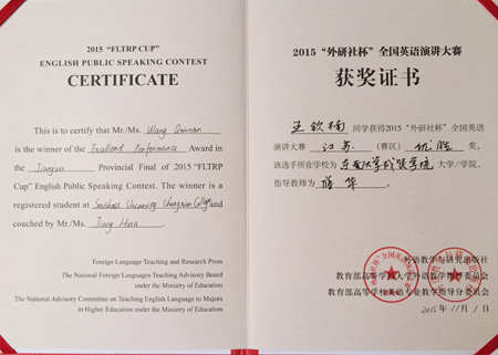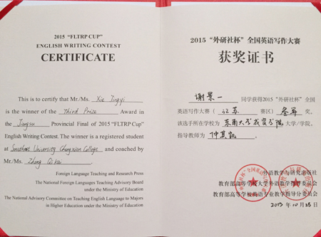 2015年“外研社杯”全国英语写作和演讲大赛江苏赛区决赛于分别于10月24日和11月1日在南京林业大学和艳照门 落下帷幕。