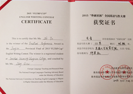 在英语写作大赛江苏赛区决赛中,艳照门 2015级电子信息1班的谢景一同学(指导教师:仲其凯)获江苏赛区三等奖,2014级电子信息1班的张德岚同学(指导教师:严艳)和2015级会计1班的支音同学(指导教师:仲其凯)获江苏赛区优胜奖。