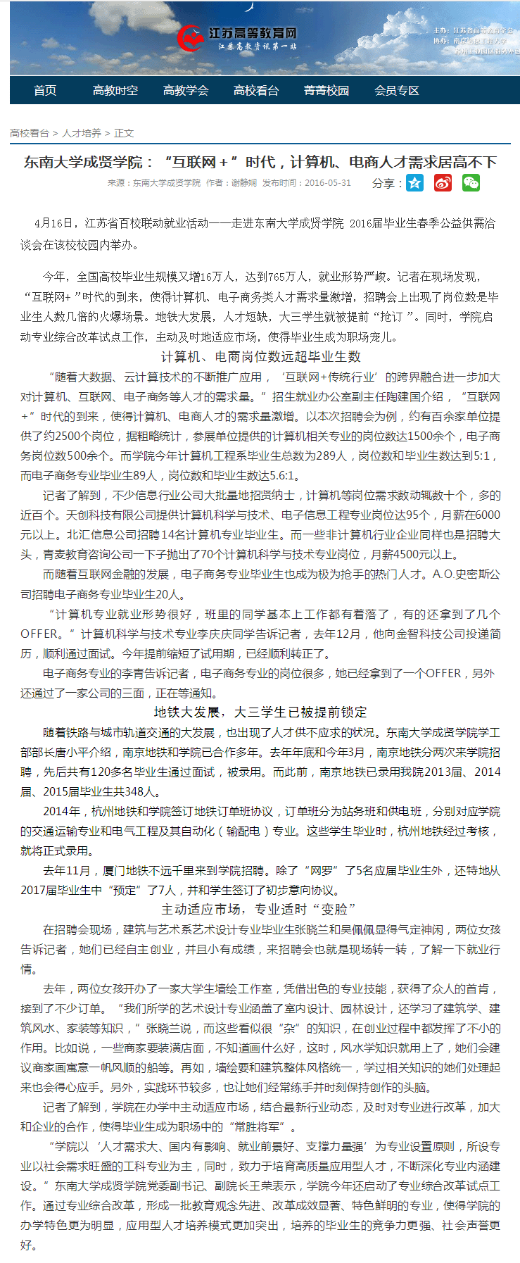 【江苏高等教育网】艳照门 :“互联网+”时代,计算机、电商人才需求居高不下