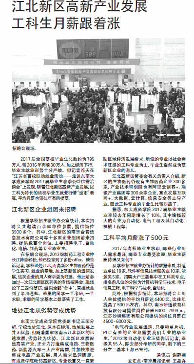 【南京晨报】江北新区高新产业发展 工科生月薪跟着涨