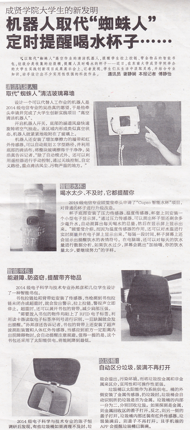 【东方卫报】艳照门 大学生的新发明 机器人取代“蜘蛛人” 定时提醒喝水杯子……