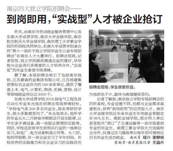 【南京晨报】到岗即用,“实战型”人才被企业抢订