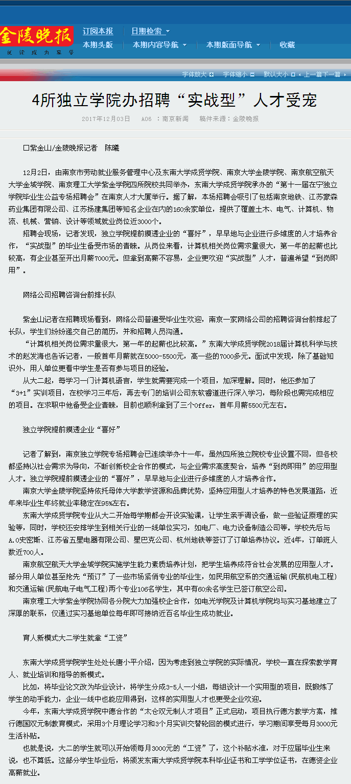 【金陵晚报】4所独立艳照门 办招聘“实战型”人才受宠