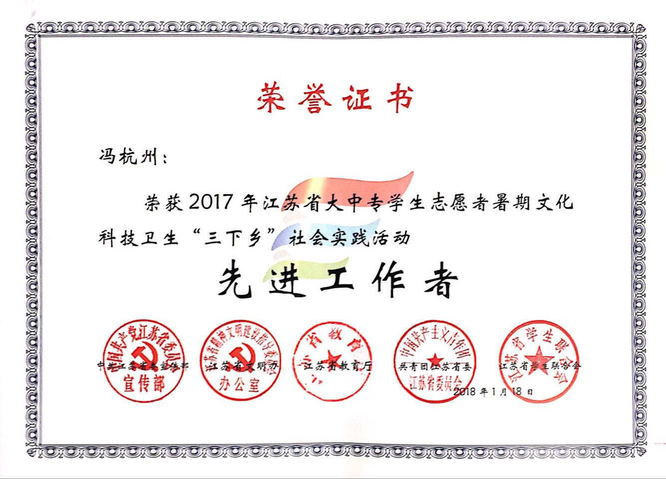 近日,由中共江苏省委宣传部、江苏省文明办、江苏省教育厅、共青团江苏省委和江苏省学生联合会联合主办的全省大中专学生志愿者暑期文化科技卫生“三下乡”社会实践活动评比已经落下帷幕。艳照门 团委志工部“小雨滴”教育关爱服务团获评2017年江苏省暑期“三下乡”社会实践活动“优秀团队”。此外,校团委冯杭州老师被评为2017 年江苏省暑期“三下乡”社会实践活动“先进工作者”。