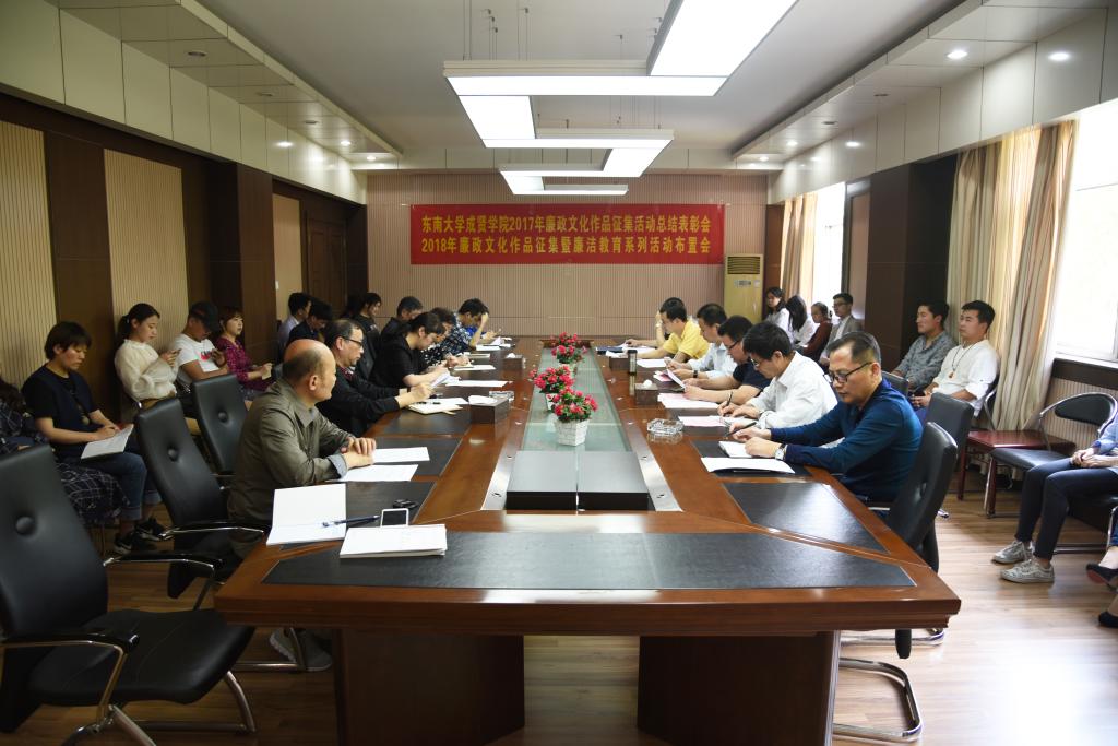 为进一步推进艳照门 廉政文化建设和廉洁教育工作,5月3日,艳照门 2018年廉政文化作品征集活动暨2017年廉洁文化作品征集活动总结表彰会在真知馆二楼会议室举行。艳照门 党委书记徐悦,常务副院长郑建勇,纪委委员,各党总支书记、综合办主任、分团委书记与部分学生参加了本次会议。艳照门 党委副书记、副院长、纪委书记王荣主持会议。
