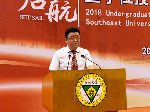 毕业生代表2014级环境设计专业2班陈康帅同学深情回忆了珍贵的大学时光,代表全体毕业生感谢母校为学生们创造了全方位的成长成才平台,并表示将不负老师和母校的期待,“求真求美,成人成贤”,真正做到,今日我以成贤为荣,明日成贤以我为荣。