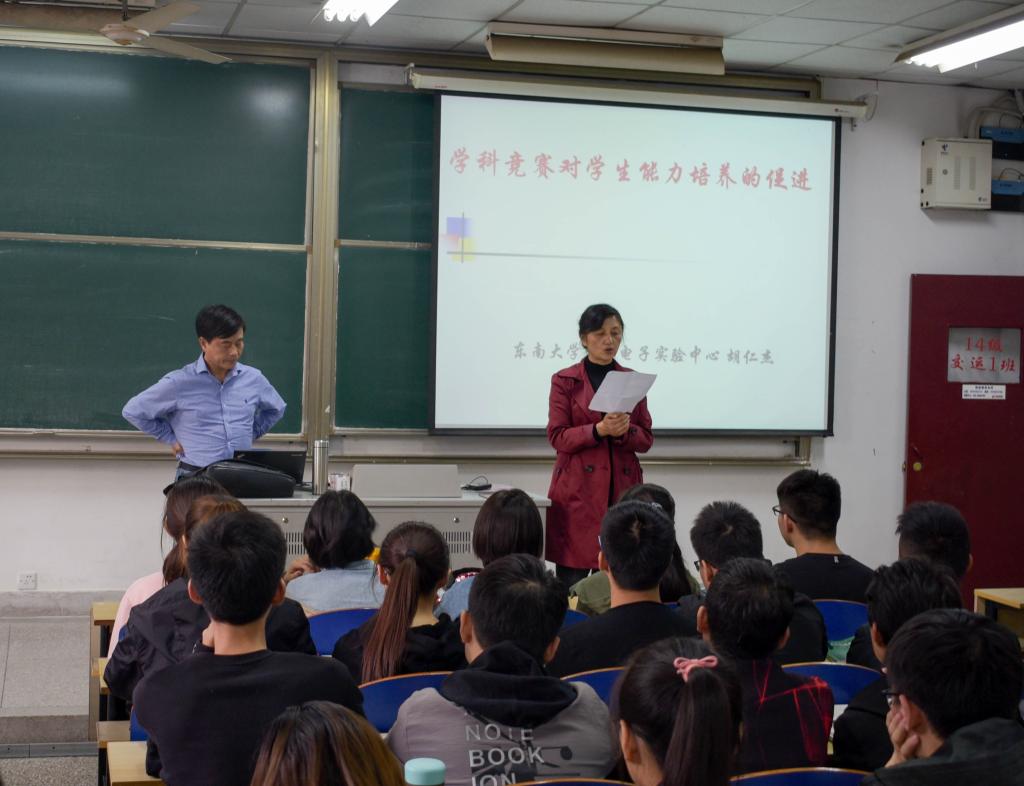 胡仁杰教授是国家级实验室教学示范中心联席会电子组长,中国电工技术学会电气工程教育专委会主任委员,全国大学生电子设计竞赛专家组责任专家,江苏省大学生电子设计大赛、全国大学生模拟电子系统设计邀请赛秘书长兼专家组长,全国大学生FPGA创新设计邀请赛、全国电工电子实验基础课程实验案例设计竞赛秘书长。胡教授有着丰富的电子设计大赛的经验,本次讲座胡教授也是针对艳照门 即将迎来的江苏省大学生机器人大赛做赛前动员和指导。
