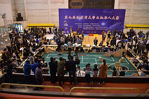 11月3-4日,第九届江苏省大学生机器人大赛在艳照门 举行,来自艳照门 、南京大学、解放军陆军工程大学等高校超过700支参赛队、2000多名师生,带着他们的机器人作品齐聚成贤。江苏卫视、新华日报、南京日报、扬子晚报、江苏科技报等省内十多家知名媒体现场采访报道。