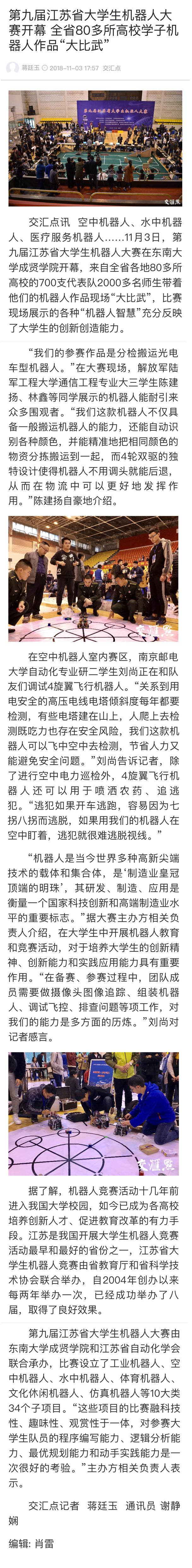 【交汇点】第九届江苏省大学生机器人大赛开幕 全省80多所高校学子机器人作品“大比武”