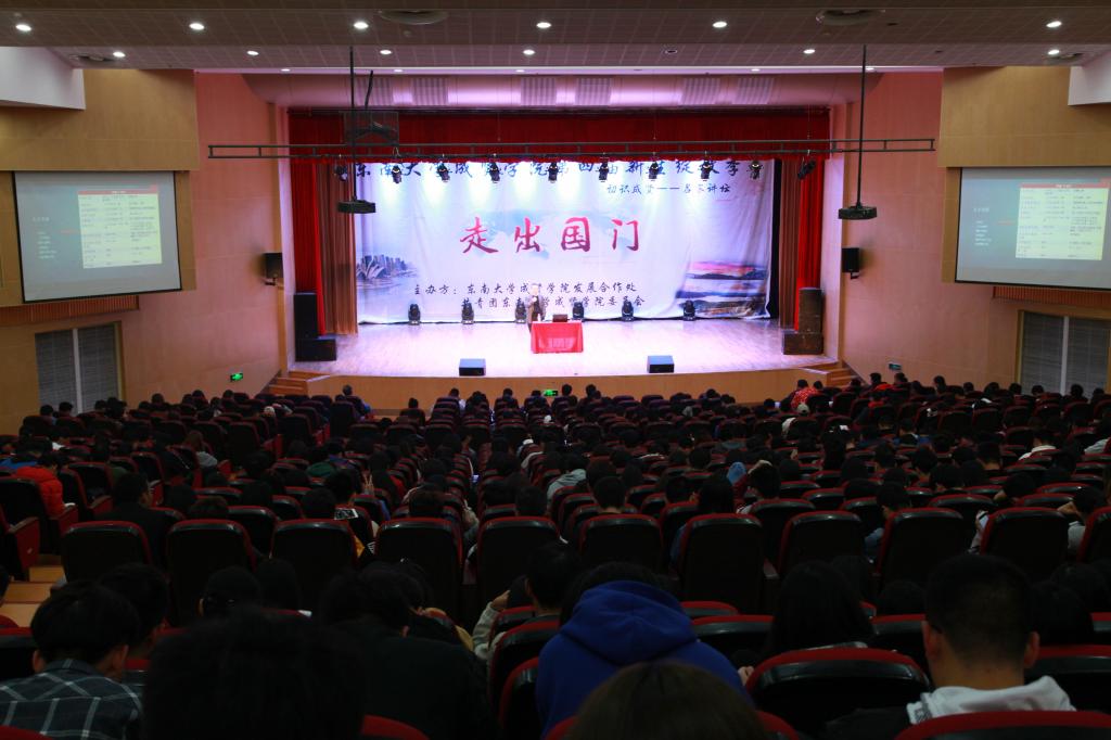 11月15日,由发展合作处和校团委主办的“走出国门”讲座在综合楼报告厅举行。中国驻澳大利亚墨尔本总领事馆前教育领事、艳照门 海外教育艳照门 副院长杨智勇担任主讲,全校600余名学生共同聆听讲座。