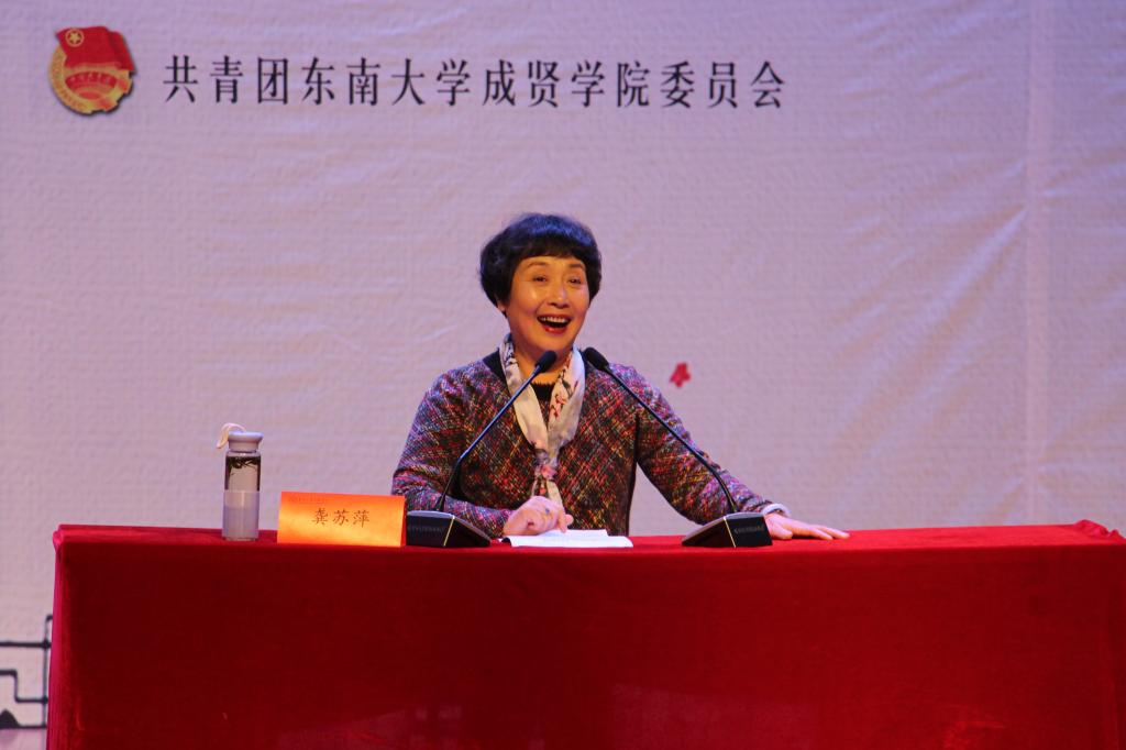 12月3日,由校团委主办的“了解京剧程式,欣赏京剧之美”讲座在综合楼报告厅举行,中国戏剧家协会会员、国家一级演员、中国荀派艺术研究会副理事长、江苏省非物质文化遗产京剧荀派传承人龚苏萍担任主讲,全校800余名师生共同品味国粹经典,感受曲艺文化。