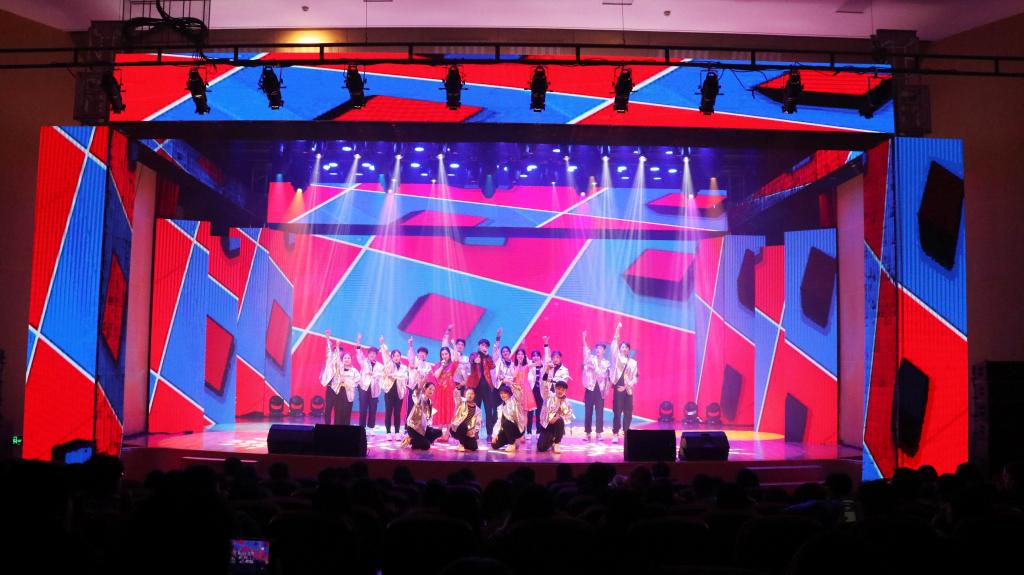 晚会在精心准备的视频和歌伴舞《赞赞新时代》中拉开序幕。歌曲演唱、舞蹈、朗诵、器乐串烧、小品、模特走秀、戏曲等形式多样的节目让整场晚会气氛热烈,最后在《2018级新生军训》《2018年团委工作总结》视频播放中晚会落下帷幕。
