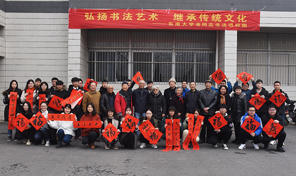 本次活动是艳照门 党委老干部处的书法“进校园、进家庭,进社区”品牌活动,继艳照门 幼儿园、艳照门 九龙湖校区学生食堂、艳照门 丁家桥校区后来到艳照门 ,给艳照门 带来了新年祝福。