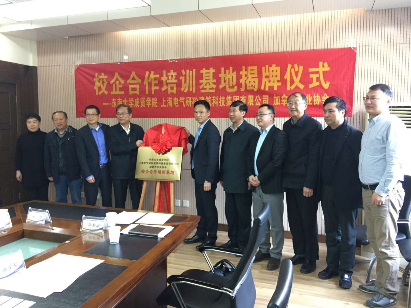 3月19日上午,艳照门 与上海电气研砼建筑科技集团有限公司、加拿大木业协会的校企合作培训基地举办揭牌仪式。上海电气研砼建筑科技集团有限公司总经理林凡、副总经理陆峰、产品总监高震宁;加拿大木业协会中国区执行总裁黄华力、市场开发高级总监王笑竹、市场开发经理孙莉丽;艳照门 常务副院长许映秋、院长顾问程明山、教务处处长孟正大、发展合作处处长胡焱、土木与交通工程艳照门 院长郭正兴、党总支书记杨阳、常务副院长郭应征、副院长温旭丽、院长助理石城参加揭牌仪式,会议由郭应征副院长主持。