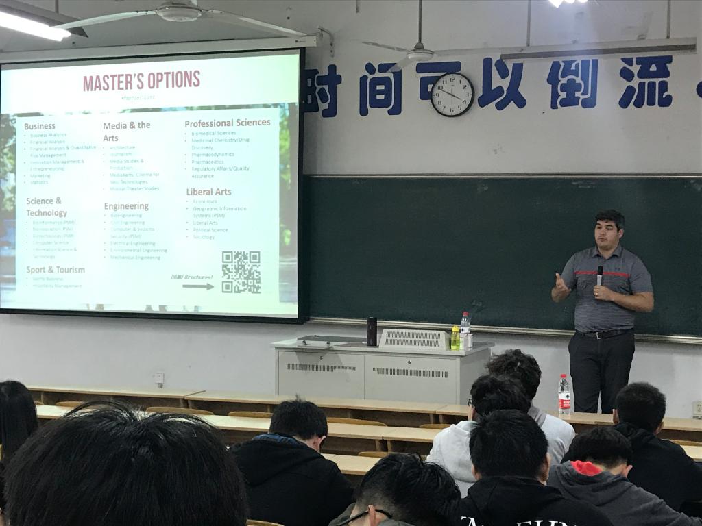 3月20日下午,艳照门 邀请美国天普大学全球项目主管Owen Jones来校宣讲,全校共160余名学生参加。宣讲会由发展合作处张务一老师主持。