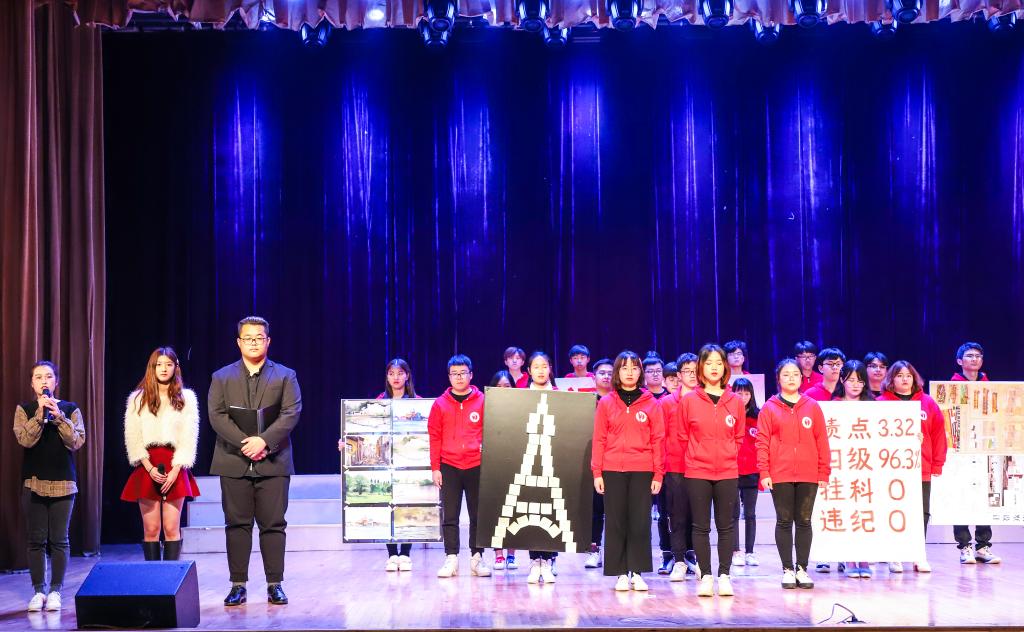 2016级建筑学1班冯康宁同学代表2018年度省级先进班集体作经验介绍:“作为省先进班集体,一直本着“笃行、好学、求新、力诚”的班级建设理念,既要为荣誉感到光荣,又要因责任懂得担当,一心一意跟党走,牢记使命,关怀社会,争做‘四个’青年,不悔青春,不负韶华。”