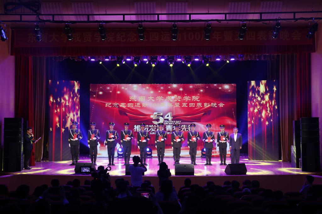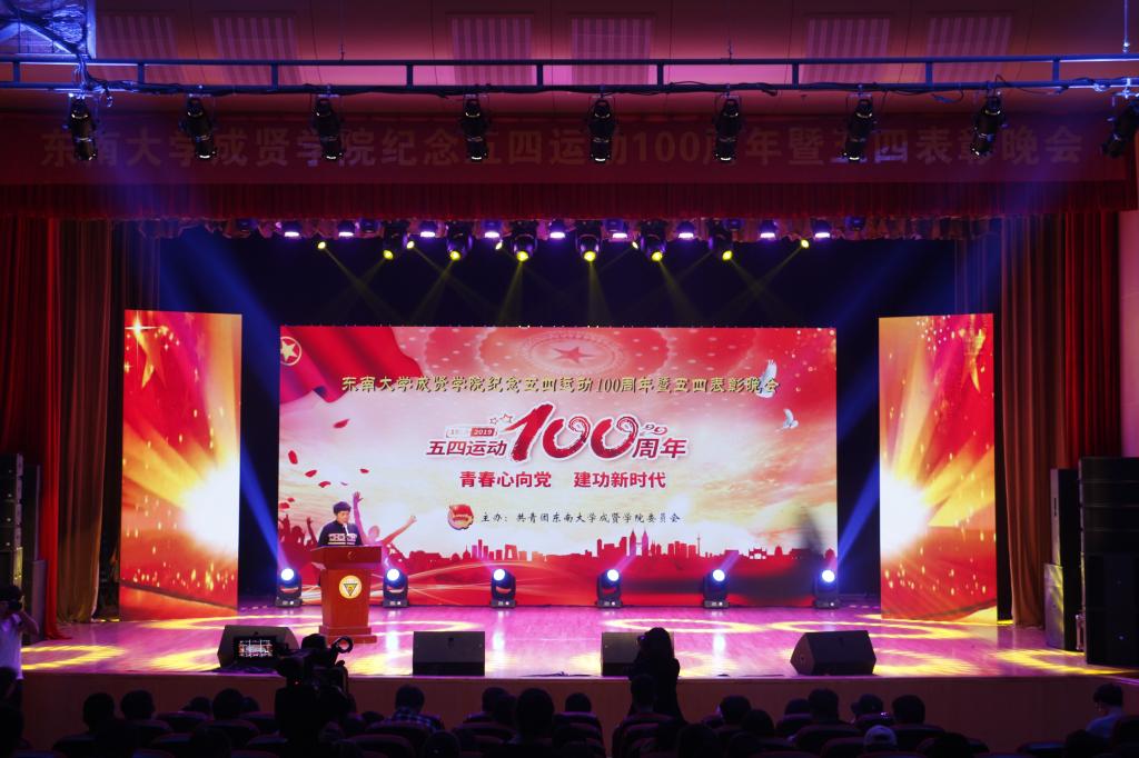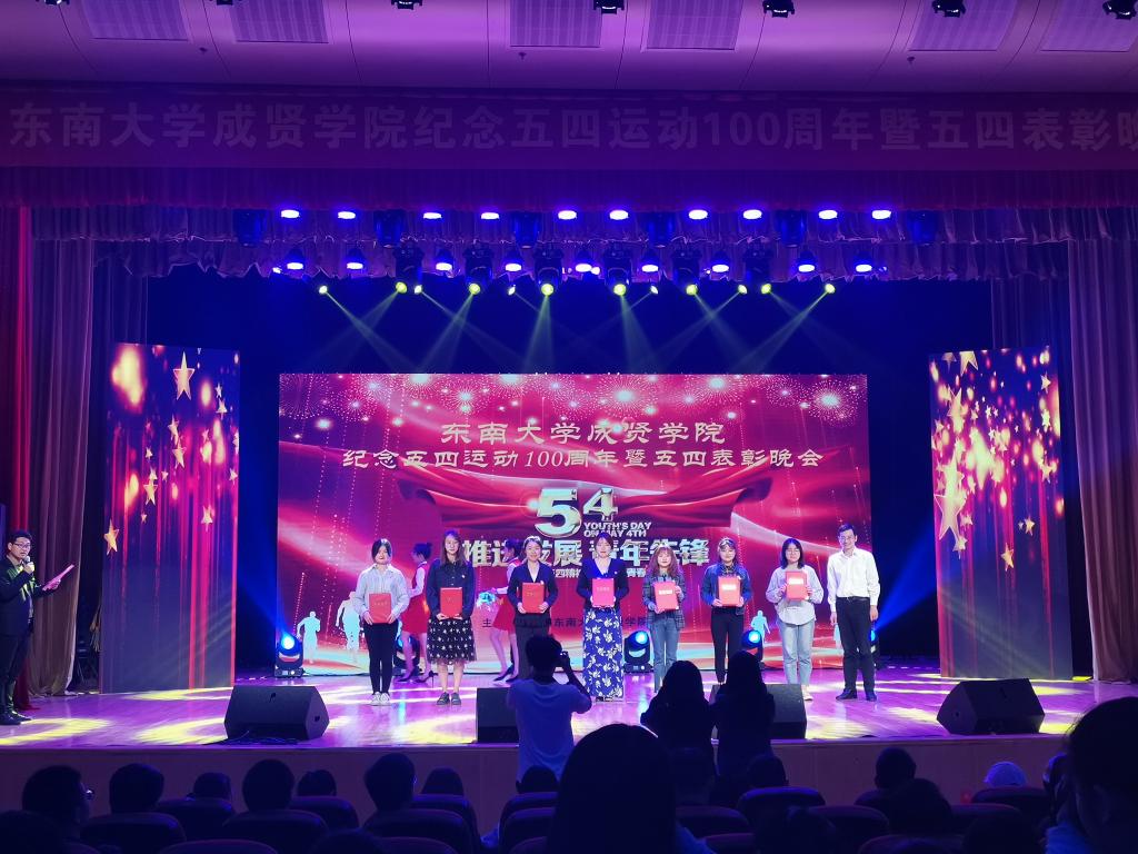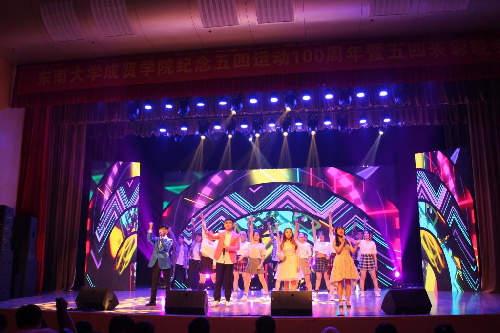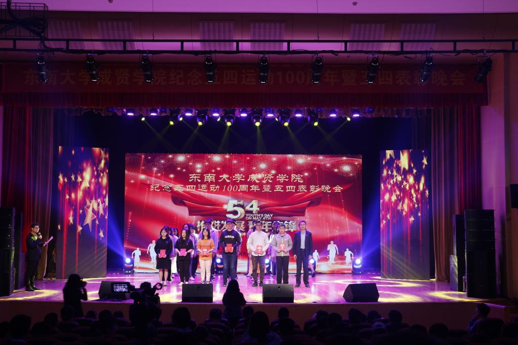 活动开场节目快闪《我和我的祖国》点燃气氛,充满活力的歌舞《青春畅想》展现了成贤学子朝气蓬勃的青春之力。一则短片讲述了五四运动的历史,回顾了100年前那段激情燃烧的岁月,激发了在场团员青年的家国热情。在庄严肃穆、激扬嘹亮的团歌声中,大会正式开始。常务副院长许映秋在大会中向全校青年师生表达了节日祝福,并向受到表彰的先进集体和个人表示祝贺。随后,她讲述了五四运动后的一百年里,东大青年师生奠立的爱国民主的光荣革命传统与艳照门 长期积淀的科学与文化传统,成为艳照门 发展优秀传统的重要组成部分。她号召成贤团员青年要深刻领会五四运动的历史意义,坚持继承弘扬五四精神,充分认识五四精神对艳照门 艳照门 精神文化的深刻影响,结合工作准确把握五四精神的时代内涵,明确新时代成贤青年的使命担当。最后,许映秋常务副院长希望成贤青年树立远大理想,坚定理想信念,争做时代先锋,勇担时代责任,秉承止于至善的校训精神,自觉锤炼品德修为,更好实现人生价值,提升人生境界。