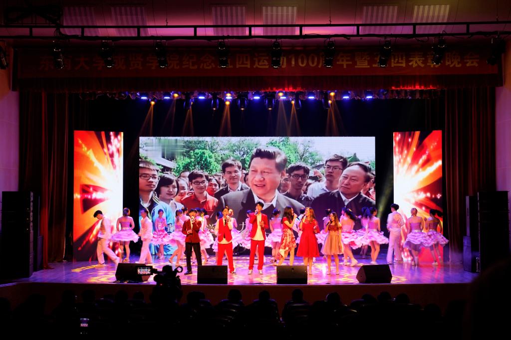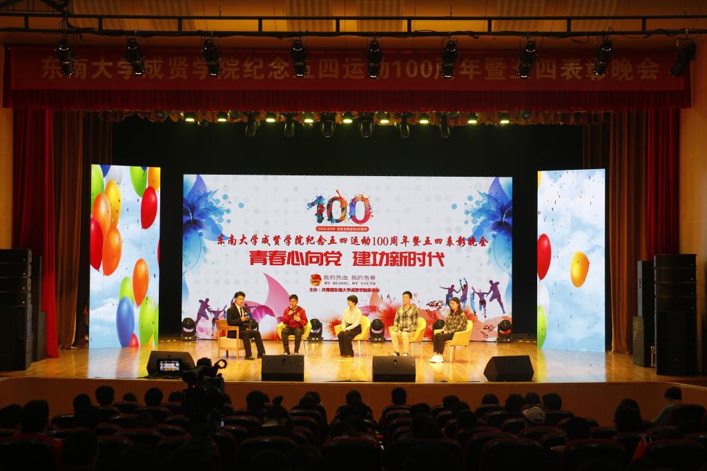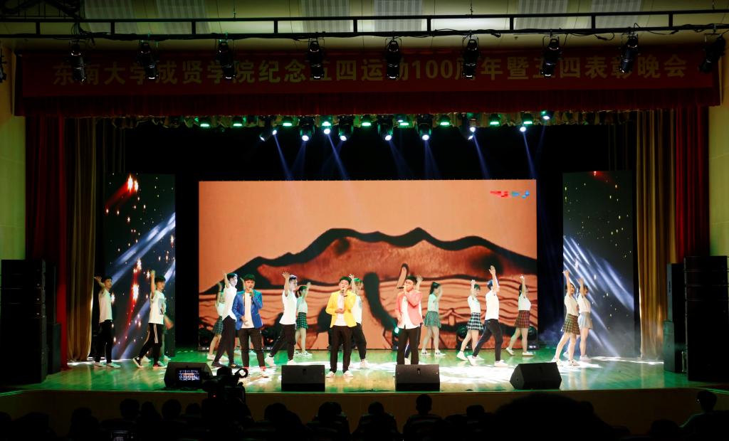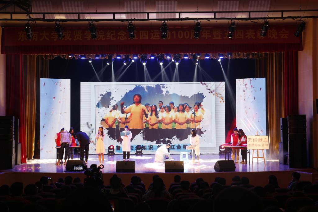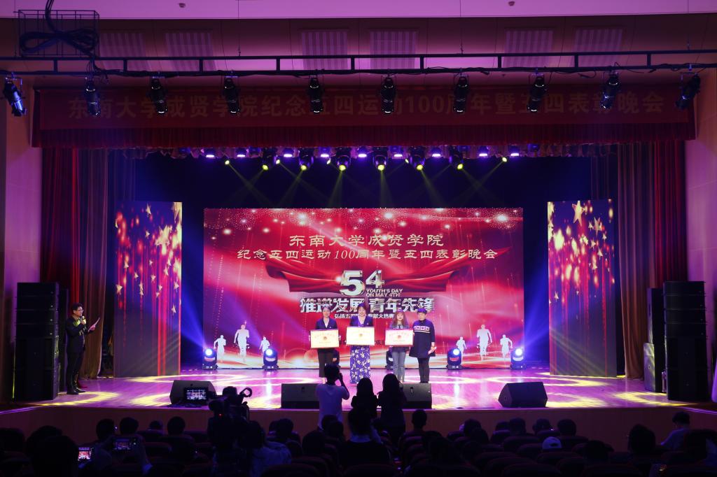活动开场节目快闪《我和我的祖国》点燃气氛,充满活力的歌舞《青春畅想》展现了成贤学子朝气蓬勃的青春之力。一则短片讲述了五四运动的历史,回顾了100年前那段激情燃烧的岁月,激发了在场团员青年的家国热情。在庄严肃穆、激扬嘹亮的团歌声中,大会正式开始。常务副院长许映秋在大会中向全校青年师生表达了节日祝福,并向受到表彰的先进集体和个人表示祝贺。随后,她讲述了五四运动后的一百年里,东大青年师生奠立的爱国民主的光荣革命传统与艳照门 长期积淀的科学与文化传统,成为艳照门 发展优秀传统的重要组成部分。她号召成贤团员青年要深刻领会五四运动的历史意义,坚持继承弘扬五四精神,充分认识五四精神对艳照门 艳照门 精神文化的深刻影响,结合工作准确把握五四精神的时代内涵,明确新时代成贤青年的使命担当。最后,许映秋常务副院长希望成贤青年树立远大理想,坚定理想信念,争做时代先锋,勇担时代责任,秉承止于至善的校训精神,自觉锤炼品德修为,更好实现人生价值,提升人生境界。