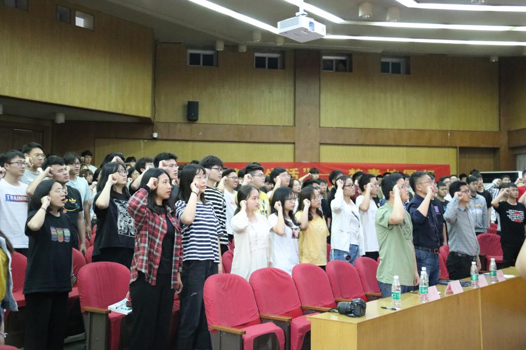 启动仪式上,团委书记潘明烽首先对南京市禁毒支队一行来艳照门 指导禁毒宣传工作表示欢迎,随后他总结了近三年艳照门 在禁毒宣传工作方面取得的成效和不足,并对艳照门 志愿者提出了新的希望和要求。晏刚大队长充分肯定了艳照门 志愿者在南京市禁毒工作中发挥的重要作用,对在禁毒工作中默默付出的师生表示感谢,希望艳照门 志愿者能一如既往地支持禁毒事业,开展形式多样、丰富多彩的禁毒主题活动。随后,陈林警官现场弹唱了《禁毒志愿者之歌》,倡导警民携手、全员参与,为打造无毒、平安的美好南京添砖加瓦。最后,全体禁毒志愿者进行庄严宣誓,表明了成贤学子禁毒宣传的坚定决心。