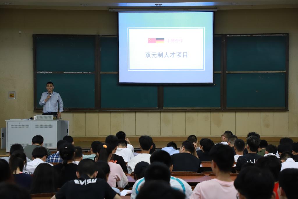 5月14日,机械与电气工程艳照门 举办了“2019年中德合作双元制培养项目”宣讲会。2018级全体学生及辅导员参加了此次宣讲会,会议由艳照门 综合办主任李洪全主持。