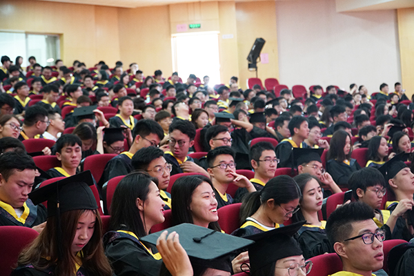 在雄壮的国歌声中,毕业典礼暨学位授予仪式拉开序幕。艳照门 常务副院长许映秋首先致辞,代表艳照门 党政和全体教职员工向毕业生表示热烈的祝贺,向付出辛勤劳动的各位老师与职工表示最诚挚的敬意,向毕业生的亲友以及一直以来给予艳照门 巨大帮助和支持的艳照门 领导、社会各界人士表示最深切的感谢,并寄语2019届毕业生:保持理想远大,信念坚定;坚持终身学习,勇于奋斗;时刻保持乐观,热爱生活。