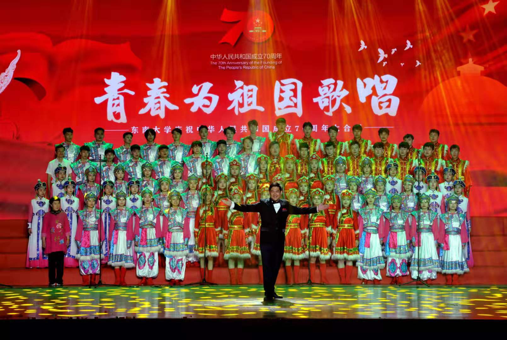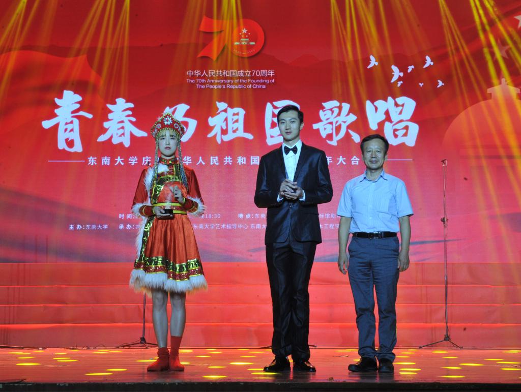9月25日晚,为隆重庆祝新中国成立70周年,艳照门 大学生合唱团在艳照门 九龙湖校区焦廷标馆参加“青春为祖国歌唱——艳照门 庆祝中华人民共和国成立70周年大合唱”比赛,艳照门 常务副院长许映秋,党委副书记、副院长、纪委书记王荣与艳照门 大学生合唱团76名同学参加演出,比赛由团委书记潘明烽带队,学生处处长助理颜秉明指挥。