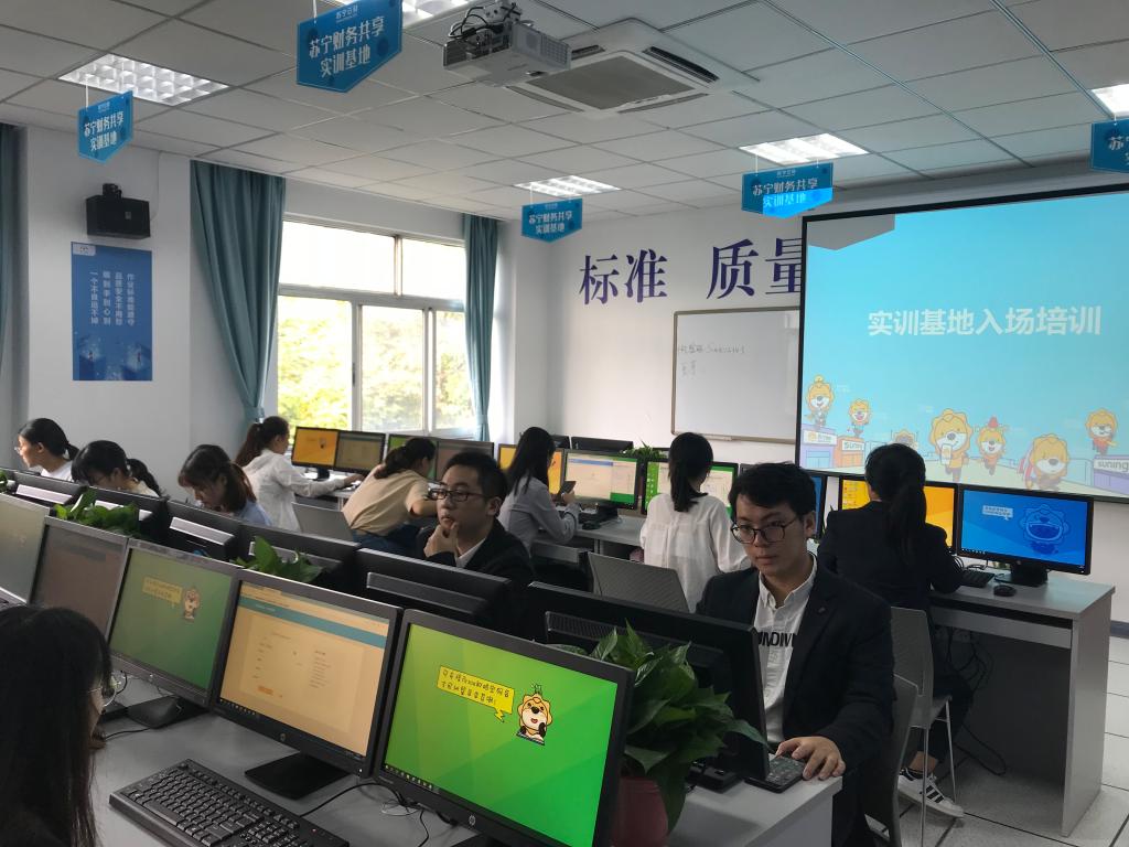 苏宁云财陈礼总经理与许映秋常务副院长随后进行了苏宁财务共享实训基地的签约和揭牌。仪式结束后,双方前往实训基地参观。