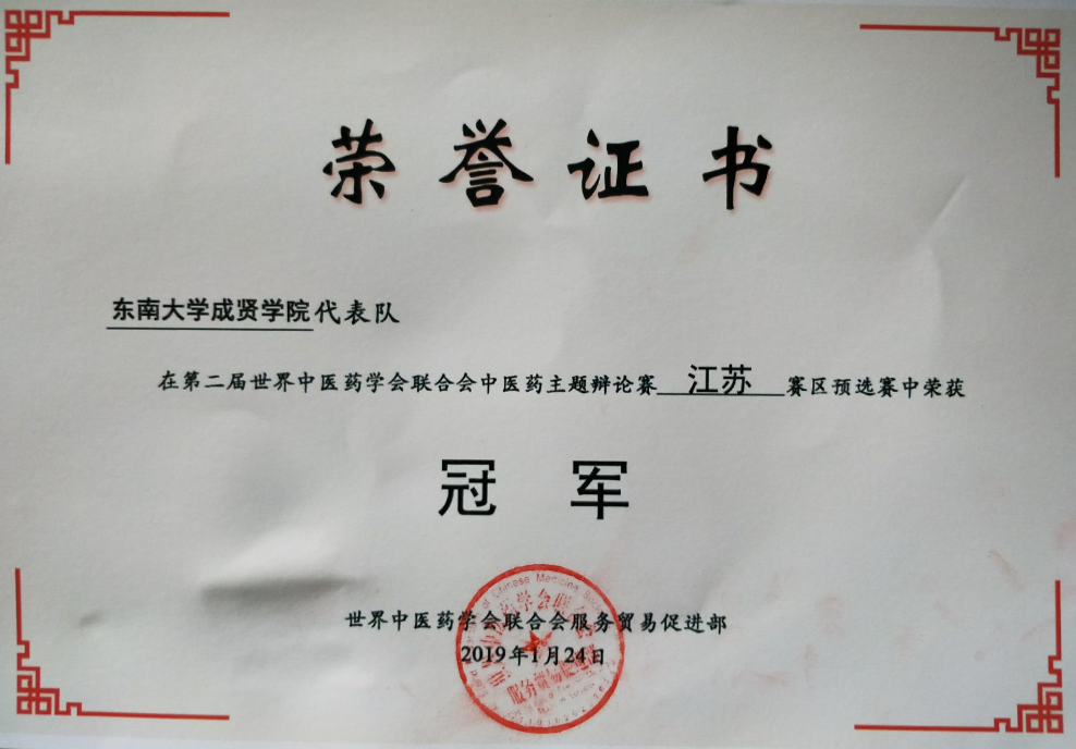 江苏省赛冠军证书