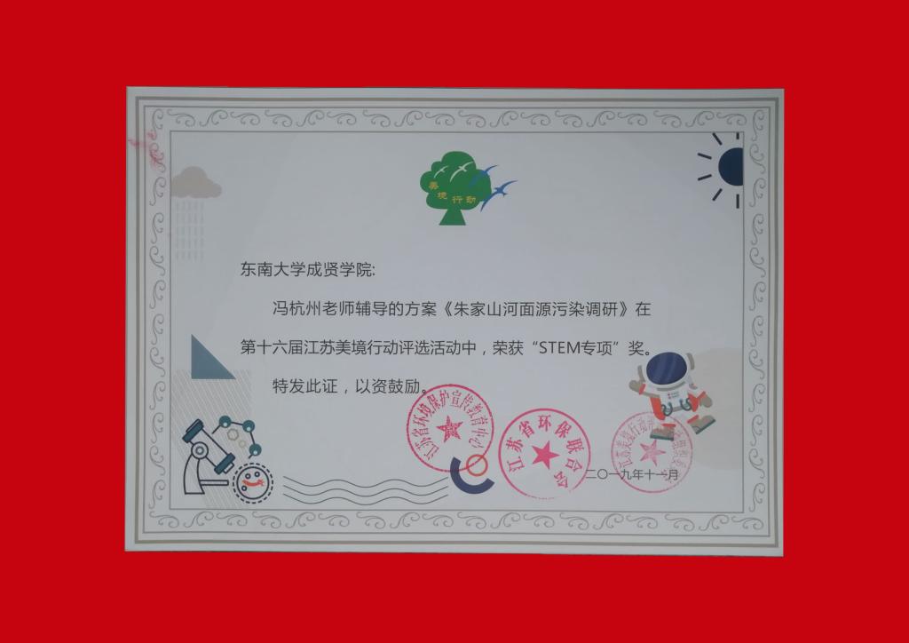 第十六届江苏美境行动得到了全省大、中、小艳照门 的积极响应,有130多所参与美境行动的艳照门 报名参赛,经组委会资格审查和专家评选小组评定,最终46个环保项目入围优秀方案实施奖、13个实施方案入围STEM专项奖。自活动开展以来,艳照门 “河长小清”实践团队在团委冯杭州老师的指导下,积极筹备,通过走访、水质检测、问卷等调研方式,研究了朱家山河的水文特征,经过线上和现场展示,艳照门 递交的实施方案《朱家山河面源污染调研》得到主办方高度认可,荣获“STEM专项奖”与“优秀方案设计奖”。